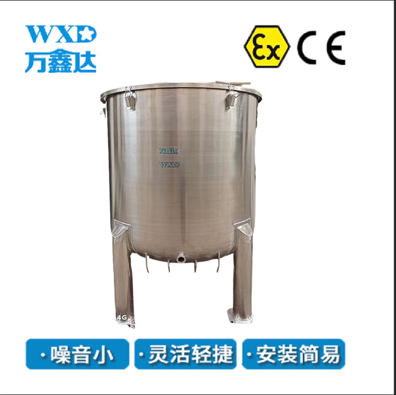 苏州万鑫达1000L不锈钢搅拌桶 ,是一款耐用、实用、环保的不锈钢制品,可用于储存物料,对物料进行混合的装备。容量大。配有叉车孔位。方便物料的移动。